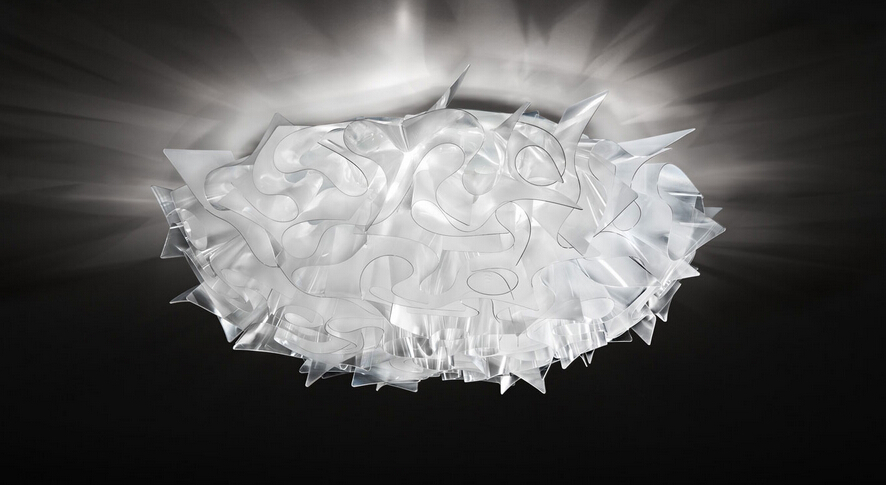 Animates space with elegance and spontaneity, awakening memories of a past full of celebrity divas and limelight with its shape and chromes. LED illuminated cylinders are arranged at different heights around a central ring and alternate shades of precious metals in pastel colours with transparencies. The brushing of the metallisation leaves to the light the task of creating the suggested decorum.